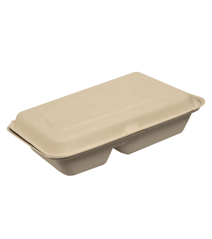 Container ορθογώνιο 850ml 2θέσιο 16,5x25x4,8cm natural sugarcane S04 50τεμάχια*4πακέτα