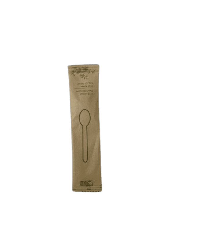 Κουβέρ ξύλινο με κουτάλι για γλυκό και παγωτό 11cm συσκευασμένο 1/1 σε χάρτινο craft περιτύλιγμα 100τεμάχια*30πακέτα
