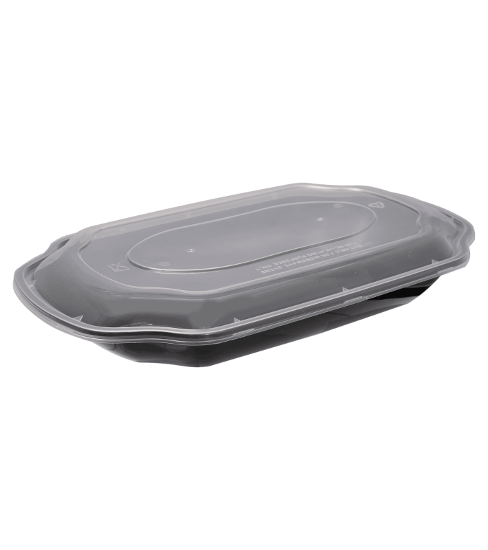 Container οβάλ PP μαύρο για φούρνους μικροκυμάτων 1250ml Τ49 με καπάκι 50τεμάχια*2πακέτα